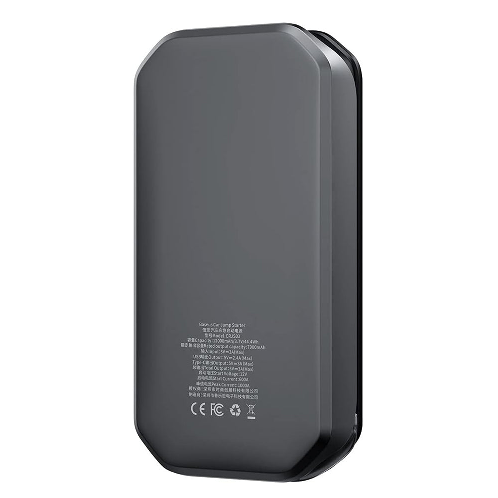 The package includes: jump starter, starting clamps, USB to Type-C cable.
