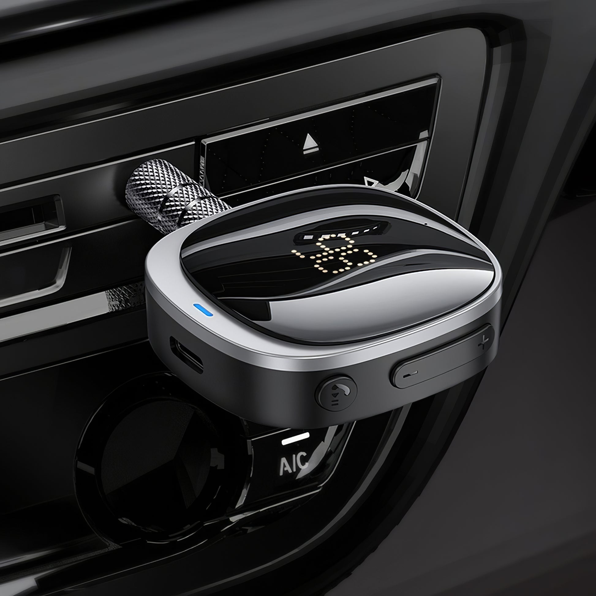 Charging is done through a USB Type-C connector. It can be used both in the car and at the office
