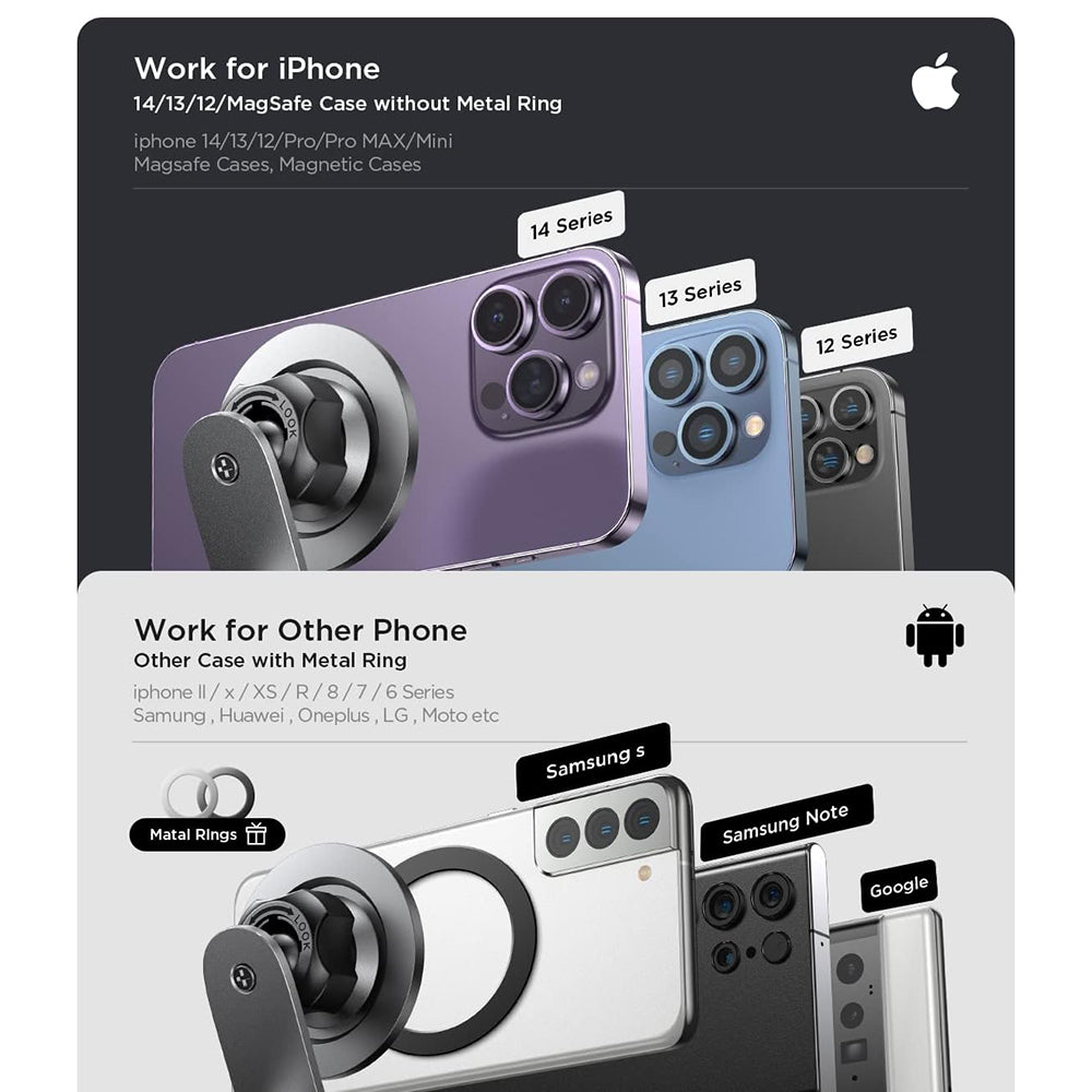 • Compatibility: iPhone (MagSafe), phones with magnetic ring.