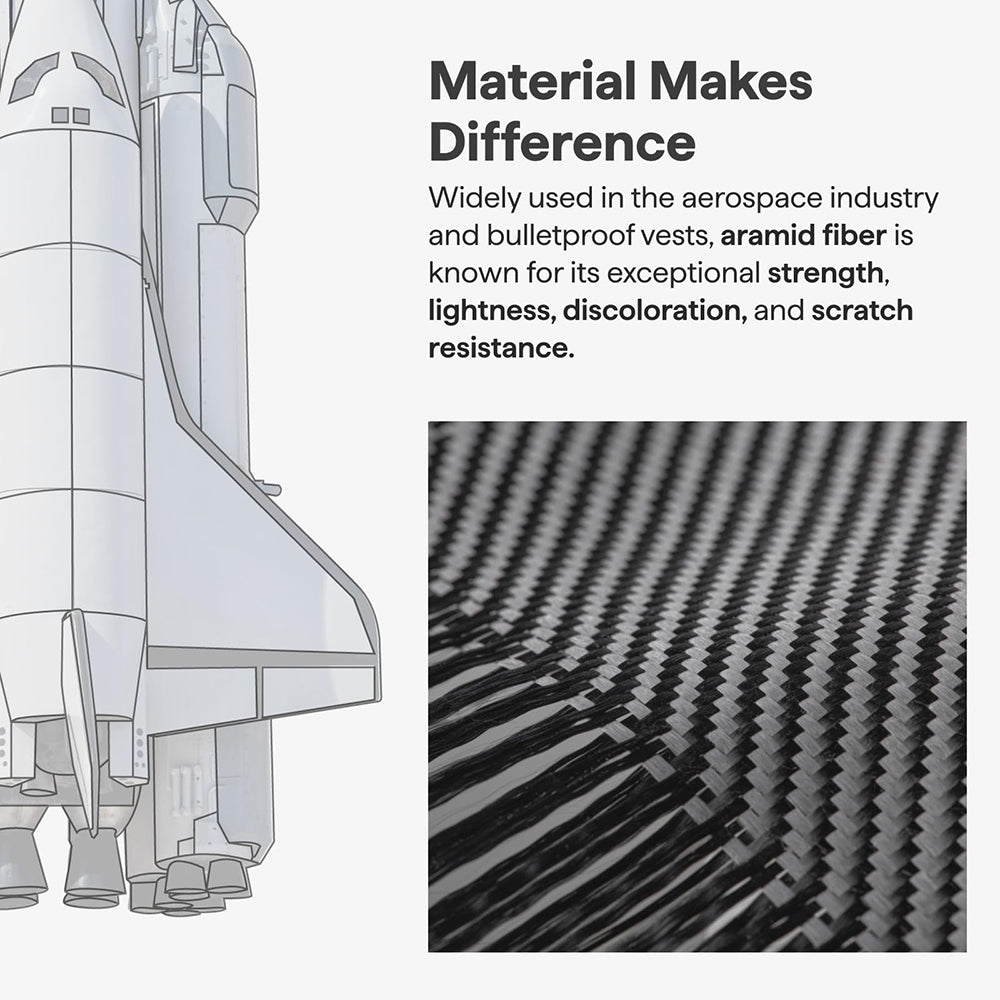 The subtly raised frame combined with aramid fiber known for its superior strength are valuable assets against damage.