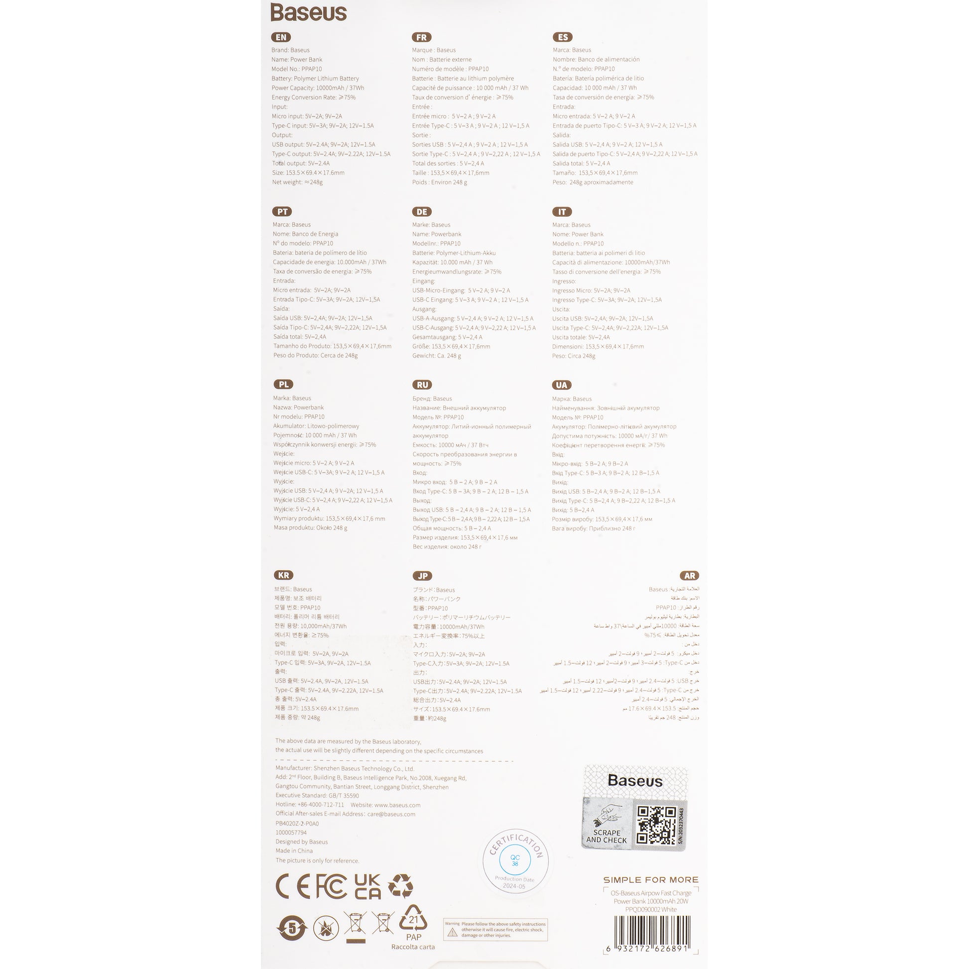 Equipado con puertos USB-C y Micro USB, Baseus Airpow permite la carga rápida tanto del powerbank como de los dispositivos conectados.