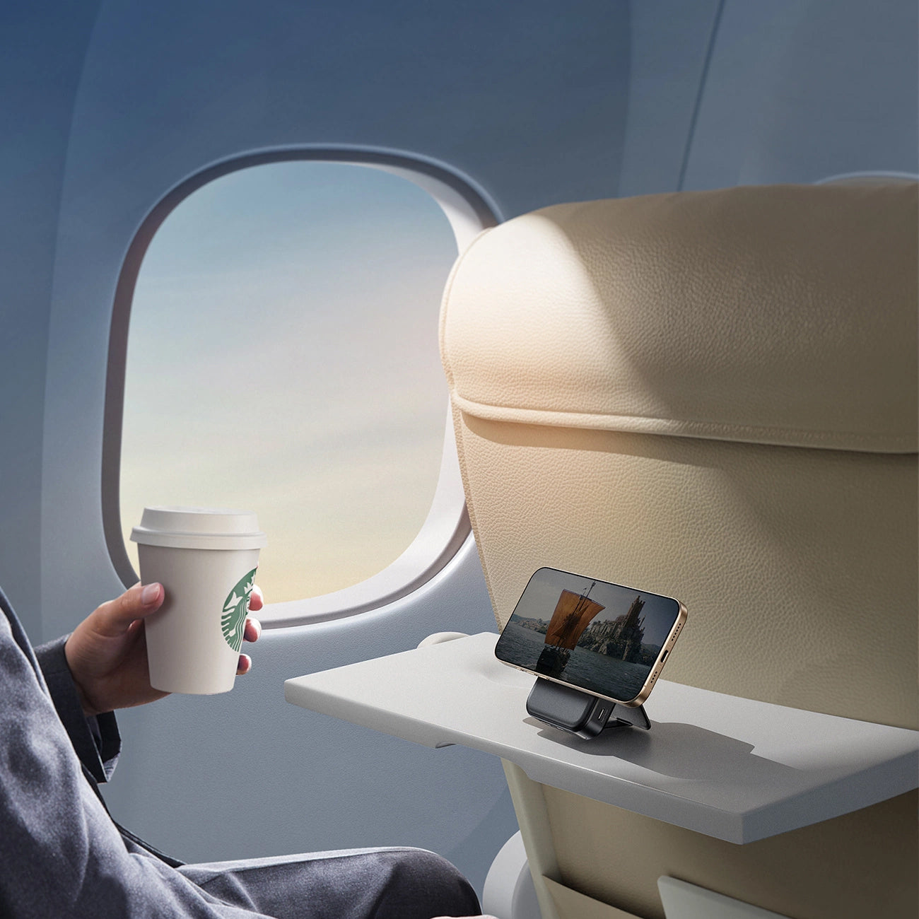el soporte integrado te permite usar el teléfono en modo manos libres, ideal para llamadas de vídeo o para ver contenido.
