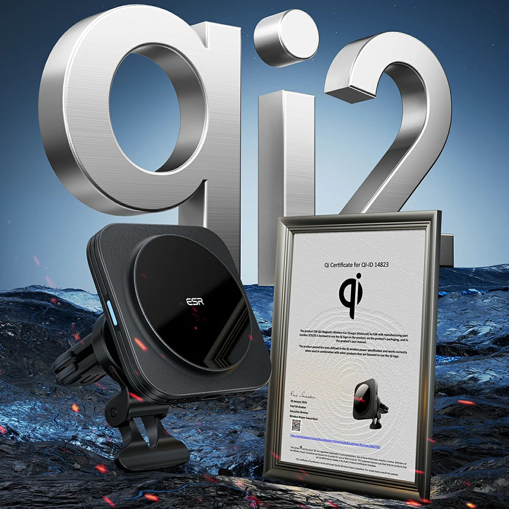Halolock QI2 es, al mismo tiempo, un soporte estable y un cargador inalámbrico que puede ser montado en la rejilla de ventilación o en el panel de control del coche.