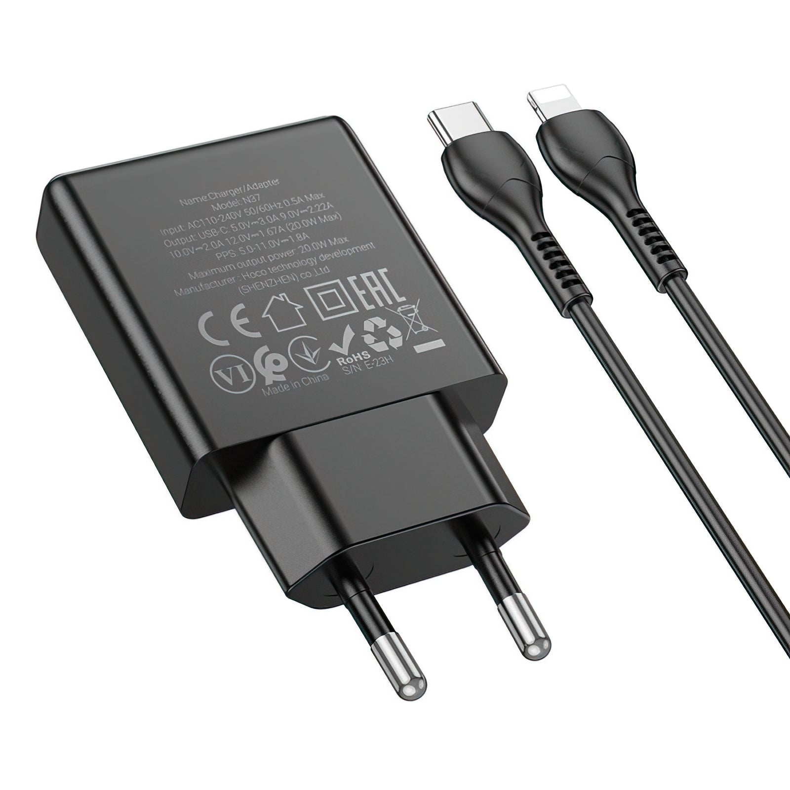 El cargador HOCO N37 está diseñado para una carga rápida y segura, siendo perfecto para dispositivos Apple. Con una potencia de 30W y