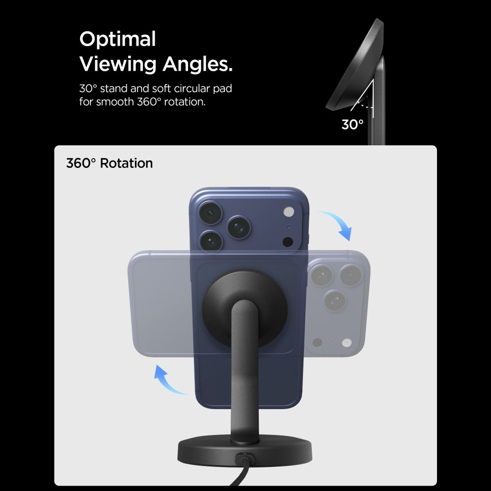 navegación en redes sociales mientras el teléfono se carga. El ángulo ergonómico de inclinación de 30 grados ofrece una visualización cómoda,