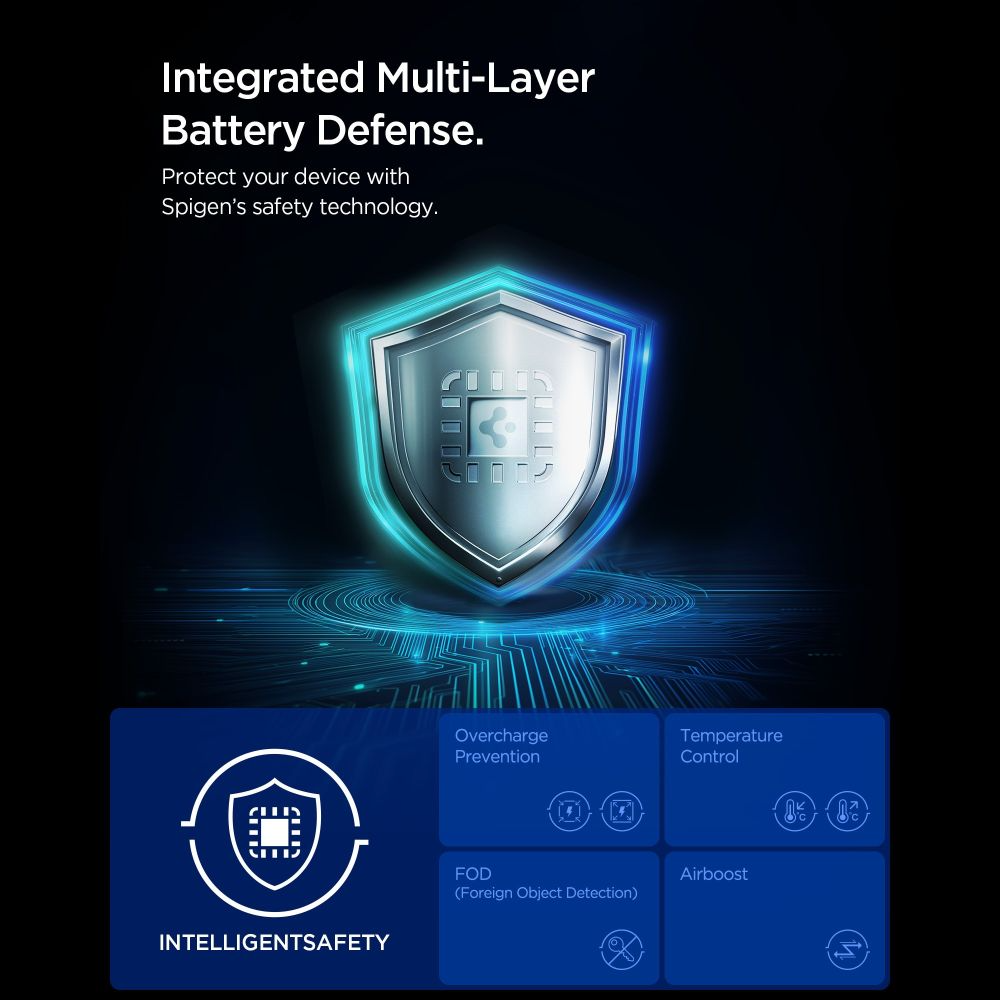 El cargador inalámbrico Spigen EF151MS Essential es la solución ideal para una carga rápida, segura y cómoda, combinando la tecnología MagSafe con