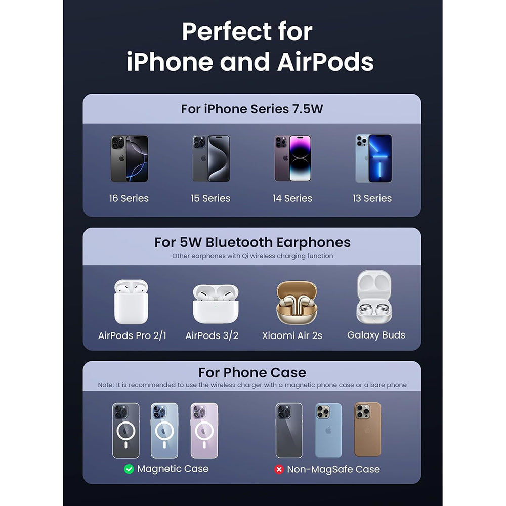 El cargador inalámbrico UGREEN W528 2in1 es la solución ideal para los usuarios que desean una carga rápida, segura y sin cables.