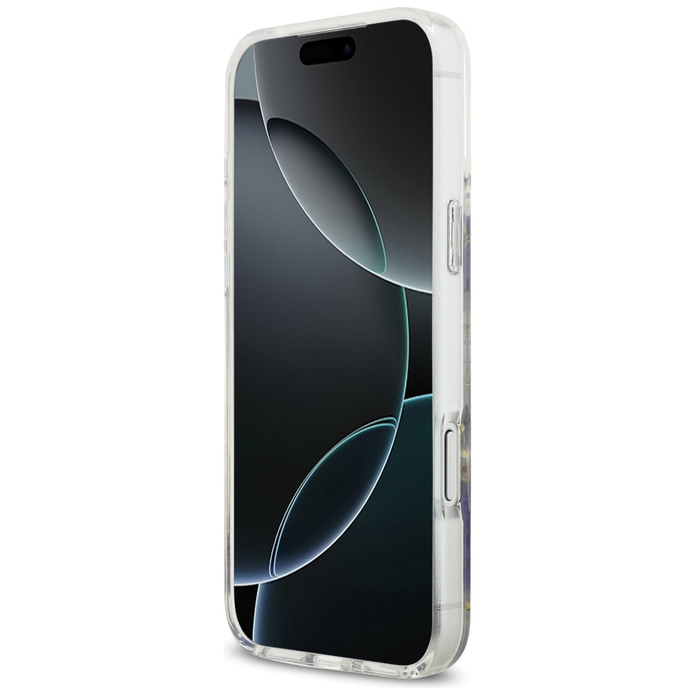 Funda MagSafe para Apple iPhone 17 Pro, Guess, Flores de Resina y Purpurina, Morado