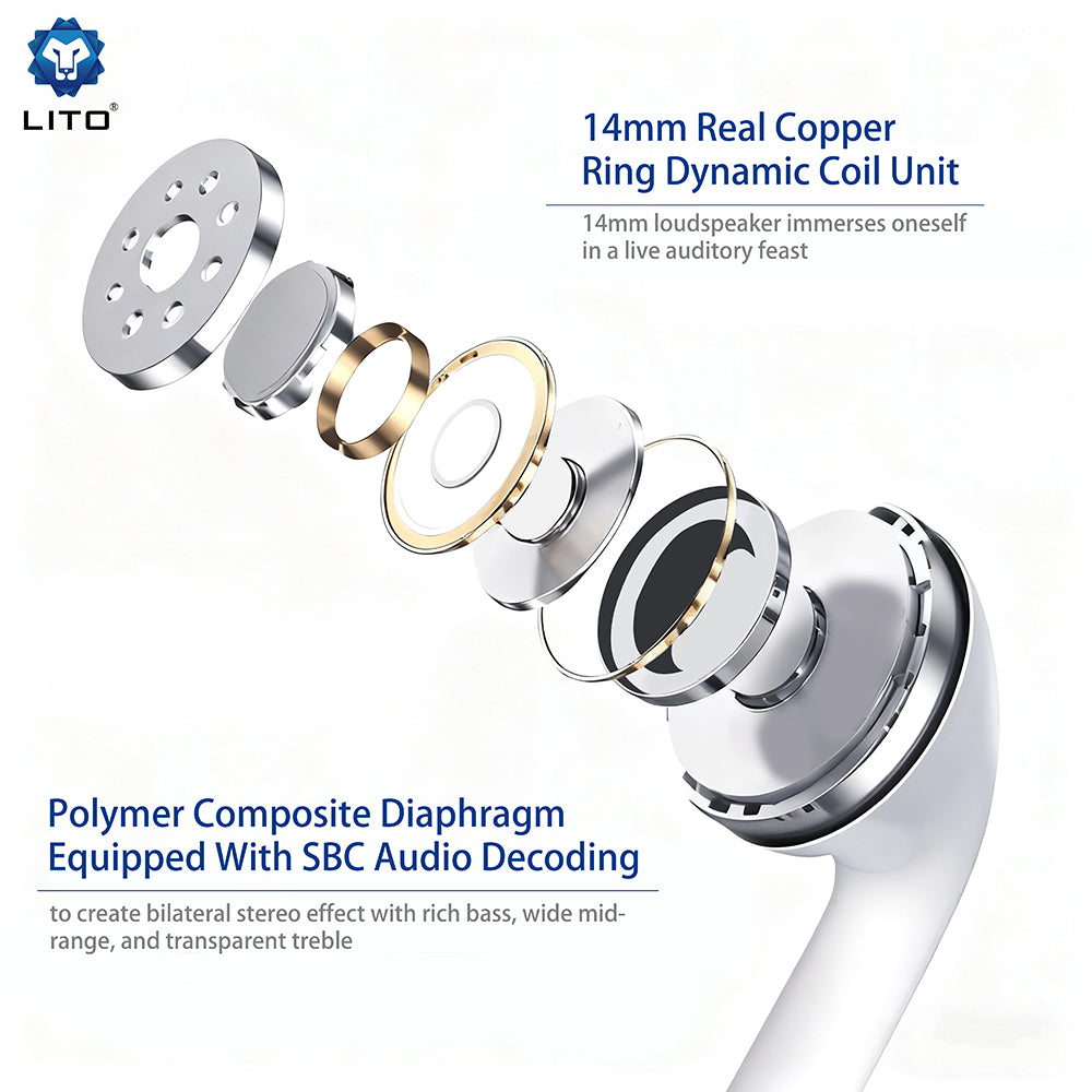 El diseño ergonómico half in-ear garantiza confort incluso en sesiones largas de uso, manteniendo los auriculares estables y ligeros en las orejas. Lito LF03