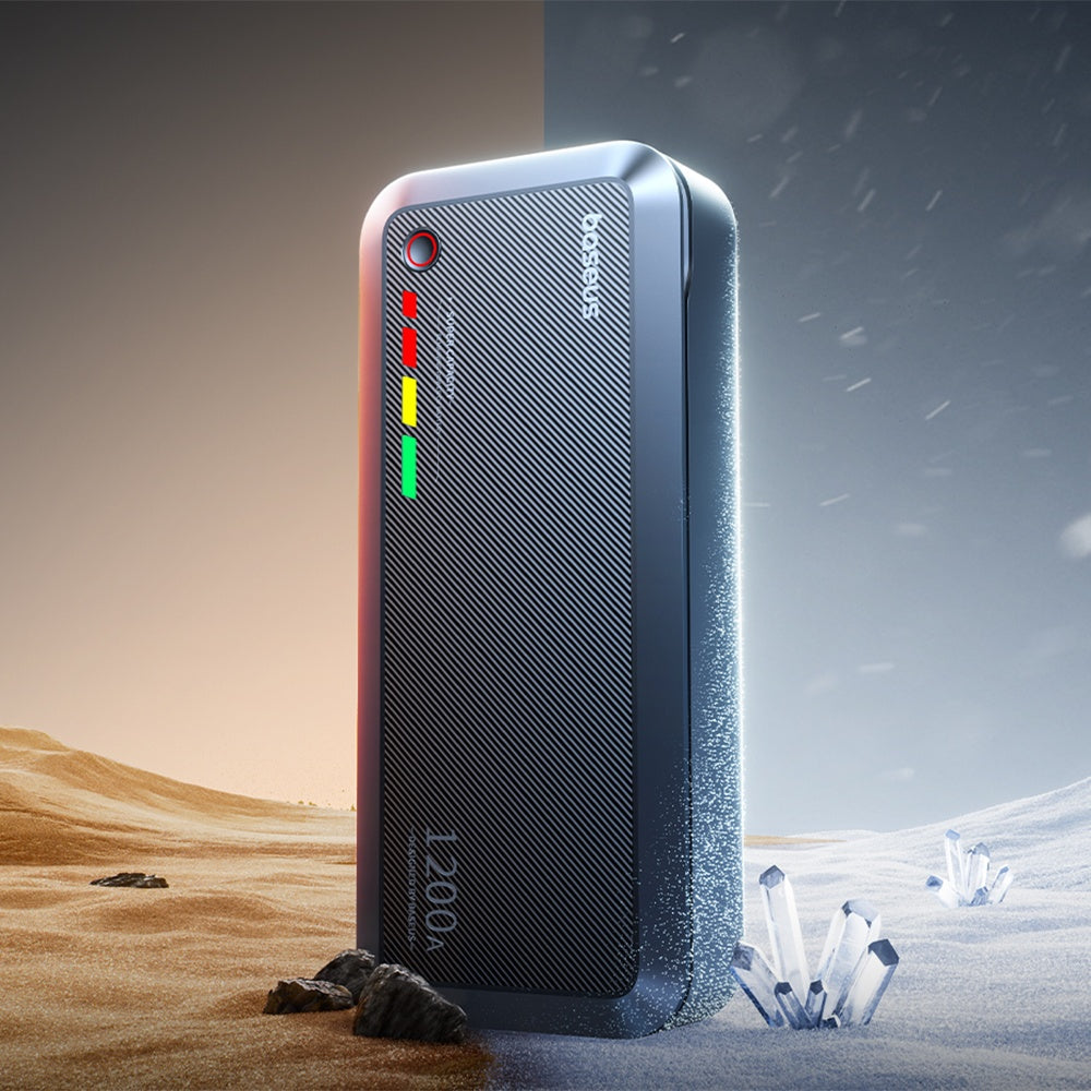 El arrancador Baseus entrega una corriente de pico de 1200A, suficiente para el arranque rápido de motores de gasolina hasta 4.0L y diésel hasta 2.0L.