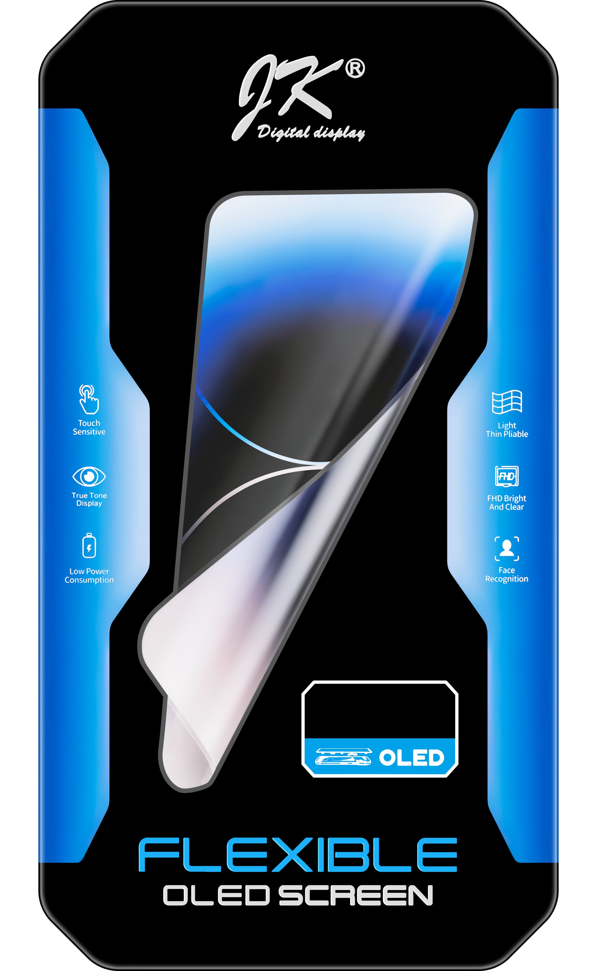 Con un alto contraste y una amplia gama de colores, ofrece una experiencia visual superior al ser delgado y flexible con amplios ángulos de visión.