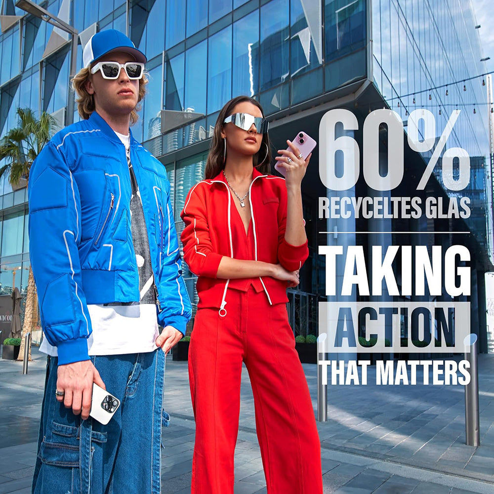 La lámina está fabricada con aproximadamente 60% de vidrio reciclado, procesado y purificado para mantener las propiedades ópticas al nivel del vidrio virgen.