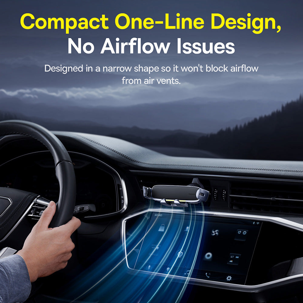 Baseus UltraControl es un soporte para auto inteligente, con sistema de sujeción gravitacional automática, que fija tu teléfono al instante