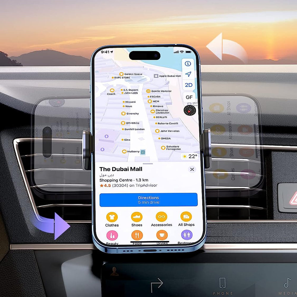 Se instala fácilmente en la rejilla de ventilación y ofrece una experiencia de uso cómoda, sin bloquear tu visibilidad.