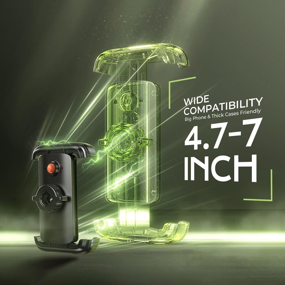 Este soporte asegura un agarre ultraestable incluso en terrenos accidentados o a altas velocidades. El mecanismo de bloqueo elimina el riesgo de deslizamiento o caída del teléfono.